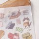 轉印貼紙教學: ➀ 將要使用的圖案用剪刀剪下來 ➁ 從中間撕開,使用有圖案的那張 ➂ 對到想轉印的位置 ➃ 用鈍器(指甲、筆、剪刀背後、刮棒)在上面來回刮刮刮 ➄ 完成 ☞ 不需使用到水,建議在手帳本等平面類的紙張轉印~