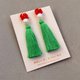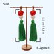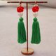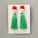 這款耳環以「仙桃」(Sarcandra glabra)為設計靈感。鮮豔的紅色珠飾與翡翠綠的流蘇相互輝映,巧妙地呈現出仙桃紅實翠葉的意象。透過輕盈搖曳的流蘇與沉穩的珠飾,營造出華麗中帶有沉靜氣質的風格。