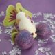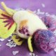 The body is embroidered with a grape pattern and the purple cheeks are designed to resemble grapes, making it very adorable.