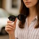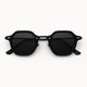 以亮黑幾何線條打造現代科技感造型,鏡框稜角俐落、光澤細緻,展現都會風格的專業態度。