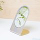 「銀霞」系列表面細緻勻郁具有磨砂手感,銀白金屬質地隱約透出粉紫色調,隨角度變化反射五彩光澤。外型簡約適用於各種情境。