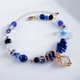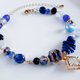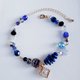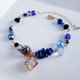 綴飾著宛如夜空般深邃藍色的美麗蜻蜓玻璃珠,以及沉靜而高雅的湛藍蘇打石小顆原石,中間點綴著閃耀的鋯石風格方形墜飾,巧妙地襯托出整體設計。