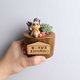 【悠哉時光-多肉植物微景觀原木盆栽客製禮物(附磁鐵字牌)】