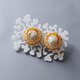 在創作微小作品時,首先會挑選主要的珠飾。為了讓那顆珠飾能展現最美的姿態,一針一線地繡上,讓色彩繽紛的珠飾們,彷彿在竊竊私語般,織就出熱鬧非凡的成品。