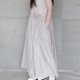 選用日本進口布料,以藍莓食材殘渣染製的永續有機棉布料,轉化為柔和自然的色彩,賦予布料全新生命。由台灣手工製作,洋裝背心式版型,腰間可自由綁帶調整,細節以不收編處理呈現自然感。布料輕盈、舒適、透氣,適合日常穿搭與四季著用。