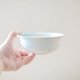 塑造成帶有邊緣的圓形碗,再施以光澤感的白釉燒製而成。