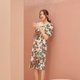 由棉滌綸面料製成的中長直筒連衣裙。它的胸部和肩部有鬆緊帶,看起來有點性感。很舒服。