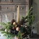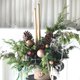 ● 飾品:選用亮鑽絨面緞帶與金蔥絨布球搭配天然松果,營造餐桌上華麗的節慶燭台花,整體細節由花藝師依照色系搭配 (有任何特殊指定請和我們聯繫)