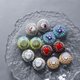 在創作微小作品時,我總是先挑選主要的珠飾。接著,為了讓那顆珠飾能以最美的姿態呈現,我會一針一線地仔細繡上,不留一絲空隙——於是,五彩繽紛的珠子們彷彿在低語,編織出熱鬧非凡的最終樣貌。