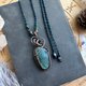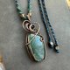 使用拉長石,配以純銅線,以繞線方式手作而成, 然後再加上復古做舊效果, 再拋光處理令花紋更具深度和對比.