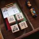 本日印章印章台座使用質地細緻的實木製作,印面也特別把多餘橡皮邊緣裁去、蓋印時較不會弄髒紙面、蓋出清晰、乾淨的圖案。特別計算過的印面大小、印在各種尺寸的手帳上都很剛好、不會過小或過大。圖案也特別經過設計、如果能夠對準手帳框線蓋印,就能呈現出宛如在手帳格子中蹓狗、騎單車、甚至盪鞦韆等效果、有種小小世界的感覺唷。