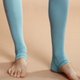 超高腰褲頭完美包裹腹部,簡單好穿的基本款緊身褲型,長度比一般全長及踝款式長約四吋,有延伸修飾腿部的視覺效果,可直接踩腳,也可不踩將褲管抓皺有如襪套一般。較怕冷的練習者也可保暖腳底腳背,特別適合空中瑜珈及其它瑜珈練習。