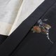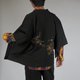 這款獨一無二的復古羽織以奢華的黑色為底,飾以精美的金彩手繪細節。設計融合了經典的日本圖案——菊花、牡丹和楓葉——象徵著吉祥、美麗和守護。