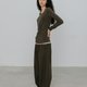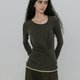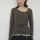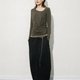 領口斜邊設計更有設計感,腰部做了扭結式設計,形成的褶皺量感,下擺和袖口拼接撞色假兩件設計,更豐富有層次,簡約慵懶調性的上衣。