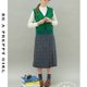 選擇了不易皺的藏藍色米黃間條格紋面料,學院復古風格,腰部做了斜紋拼貼紐扣設計,左側兩個斜褶,不對稱的層次美感,褶固定一段不顯胯,A字裙型包容多種身材。搭配白襯衫,疊穿綠色針織馬甲和卡其短西服,棕色樂福鞋,秋日預科生學院風素白女孩。