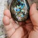 褐色的、綠色的、墨綠色的、粉色的、藍色的、多彩的、拿在手中轉動時,彷彿散發著有如孔雀羽毛般神秘而絢麗的色彩,非常迷人!手感非常溫潤,小小一顆,但存在感十足!這是唯一的一顆,不會再有第二顆一樣的,喜歡拉長石多變樣貌的朋友,請把握!
