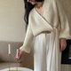 訂製款裹身羅紋針織開襟外套。M 尺寸,淺奶油色(如圖所示)現貨可立即出貨。