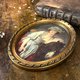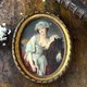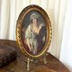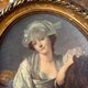 這件作品雖然是近代工藝品,但它其經典藝術氛圍令人驚豔。此近代複製工藝,以精緻印刷貼合於纖維板基材,再以特殊清漆模擬油畫筆觸紋理,完美重現了十八世紀的金色浮雕橢圓形畫框細節,整體展現出無可挑剔的法式沙龍復古風格。