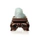 翡翠 頂級冰糯種飄綠 祥瑞醒獅 天然A貨翡翠擺件|黑檀木座