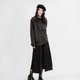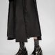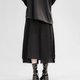 以八片剪接打造俐落 A 字輪廓,羅馬布略為硬挺讓裙型更立體。下襬不規則剪裁與不收邊設計增加動態層次,走動間呈現低調卻鮮明的風格。搭配襯衫、針織或短版上衣都能展現個性質感。
