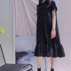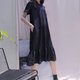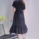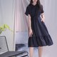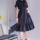 《現貨》深藍色輕薄紋理連身裙〈另附腰帶〉