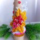 手工迷你聖誕樹,適合擺放於桌面作為裝飾。這款麻繩聖誕樹散發著質樸風格,並以手工製作的閃亮 EVA 泡棉花卉裝飾點綴。