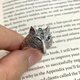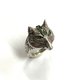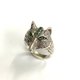維多利亞風格狐狸頭戒指配祖母綠石 925 純銀