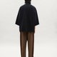 後背部分沿著人體上背弧度線條設計,於領下位置加入多條褶子剪接,不僅讓視覺線條呈現錐形延伸的流動感,也使背部輪廓更貼合自然曲線,提升整體穿著的立體度與舒適性。