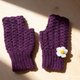 - 以濃郁紫羅蘭色毛線鉤織的半指手套,搭配一朵小雛菊點綴,保暖手腕與手背又不影響打字與滑手機。 適合辦公室、通勤或冬天逛市集時配戴,為日常穿搭增添一抹可愛亮