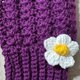• 以深紫羅蘭色毛線鉤織,色澤飽和、不易顯髒,搭配單側小白花與黃色花心,低調中帶一點俏皮感。