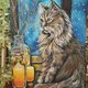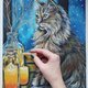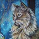 「當蠟燭點燃時。貓的肖像」 - 紙,油畫棒。原創油畫棒作品。作者是納德日達·科科里娜。