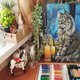 這幅畫描繪了一隻毛茸茸的貓坐在結霜的窗戶旁,窗戶後面下雪。前面點著蠟燭,發出溫暖的光芒,營造出溫馨的夜晚氛圍。貓看著映在她眼裡的蠟燭火焰。窗外冬日的風景和溫暖的燭光在這幅畫中營造出一種舒適和溫暖的感覺。油畫棒的運用賦予了畫面柔和和溫情,進一步強調了這一幕的舒適和寧靜。