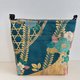 以沉穩的藍綠色與金色為基調,搭配金線的細緻光澤,襯托出辻が花特有的華麗與氣質。開口處設有拉鍊,能防止內物掉落,無論是日常使用、旅行或特殊場合,皆能安心攜帶。此款和洋風格獨特的包款,無論搭配和服或西服皆能輕鬆駕馭。