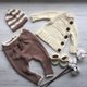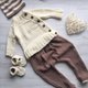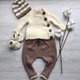 - 男嬰手工編織的棕和米色服裝套裝:毛衣、褲子、帽子、靴子。如果您需要其他顏色,請與我聯繫。