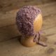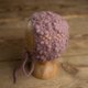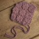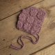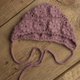 一頂漂亮的紫色帽子,適合新生女嬰拍照,飾有蕾絲領子和精緻的蝴蝶結