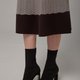 修飾腿部線條的A字型長裙,配條結合移針浮線技法,仿造如同梭織山型紋布料的紋理效果。腰頭與下擺以延續山型紋雙色撞色打造俐落而不過於拘謹的形象。