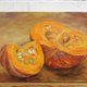 Oil painting pumpkin painted on canvas, varnished from external influences.