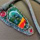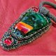 繡有珠子的毛氈,在中心 - 作者的彩色玻璃凸圓形。背面飾有真皮。吊墜掛在鉤編串珠繩上——繩索觸感舒適且是塑料的。