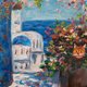 描繪了傳統的聖托裡尼島刷白建築,點綴著鮮豔的九重葛,旁邊還有一個盛滿鮮花的大花盆,以及一個毛茸茸的小驚喜——一隻可愛有趣的貓咪正從花盆中探出頭來。希臘與貓咪一直是我創作靈感的無窮泉源,我非常樂意與您分享!