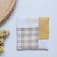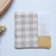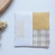 前片採用配色拼接縫製而成。並飾有繡花線。背面為麻。可雙面使用。裡面有合成襯裡。幫助吸收水分和熱量一點。而且布料可以反複使用後清洗。